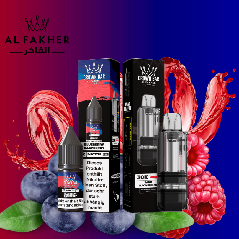Das Al Fakher Cubic 30K – Blueberry Raspberry Bundle vereint den süßen, reifen Geschmack von Blaubeeren mit der fruchtigen Frische von Himbeeren – eine perfekte Kombination aus süß und fruchtig, die deine Geschmacksknospen verwöhnt.